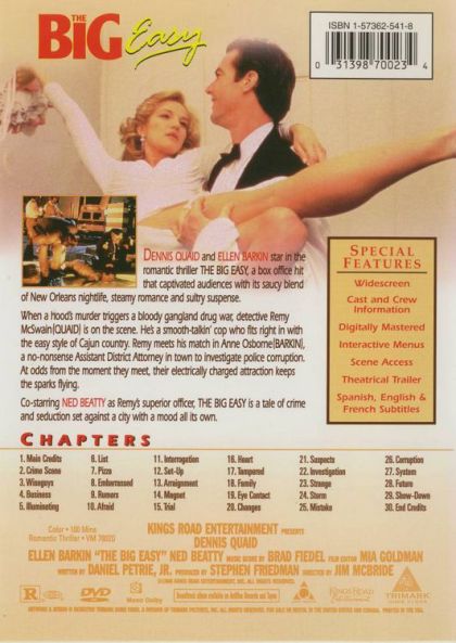 Director Jim McBride (Great Balls of Fire) was in top form with this 1987 sizzler. You may not remember the particulars of the plot, which concerns supposed gang killings and police corruption, because it is the romance that has staying power. Blame this on Quaid and Barkin, who send off enough sparks to light up Bourbon Street. They are not only sexy together, but endearing, which makes you want to like them as much as they like each other.