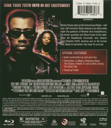 The recipe for Blade is quite simple; you take one part Batman, one part horror flick, and two parts kung fu and frost it all over with some truly campy acting. What do you get? An action flick that will reaffirm your belief that the superhero action genre did not die in the fluorescent hands of Joel Schumacher. Blade is the story of a ruthless and supreme vampire slayer (Wesley Snipes) who makes other contemporary slayers (Buffy et al.) look like amateurs. Armed with a samurai sword made of silver and guns that shoot silver bullets, he lives to hunt and kill "Sucker Heads." Pitted against our hero is a cast of villains led by Deacon Frost (Stephen Dorff), a crafty and charismatic vampire who believes that his people should be ruling the world, and that the human race is merely the food source they prey on. Born half-human and half-vampire after his mother had been attacked by a blood-sucker, Blade is brought to life by a very buff-looking Snipes in his best action performance to date. Apparent throughout the film is the fluid grace and admirable skill that Snipes brings to the many breathtaking action sequences that lift this movie into a league of its own. The influence of Hong Kong action cinema is clear, and you may even notice vague impressions of Japanese anime sprinkled innovatively throughout. Dorff holds his own against Snipes as the menacing nemesis Frost, and the grizzly Kris Kristofferson brings a tough, cynical edge to his role as Whistler, Blade's mentor and friend. Ample credit should also go to director Stephen Norrington and screenwriter David S. Goyer, who prove it is possible to adapt comic book characters to the big screen without making them look absurd. Indeed, quite the reverse happens here: Blade comes vividly to life from the moment you first see him, in an outstanding opening sequence that sets the tone for the action-packed film that follows. From that moment onward you are pulled into the world of Blade and his perpetual battle against the vampire race. --Jeremy Storey