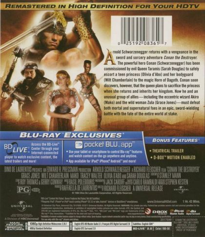 Conan, the swashbuckler, is promised that his dead love will be revived if he procures a magic crystal from a magic fortress. He gathers Grace Jones, Mako, and Tracey Walter (fighter, wizard, and thief) to help him as he overcomes the perils on the way.