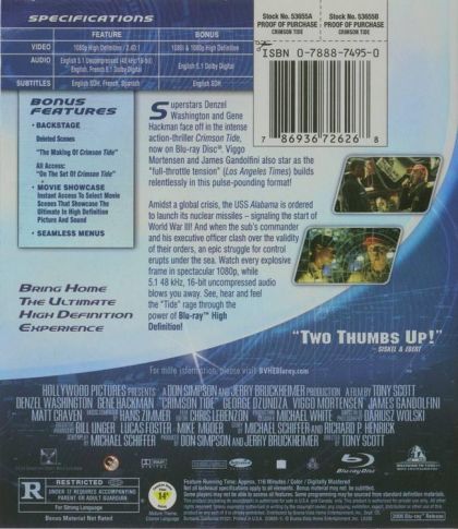 Action master Tony Scott scored another hit with this powerful submarine drama that features excellent dialog, a strong tension-filled story and a great cast that, much like True Romance, is full of familiar faces, including Law & Order's George Dzundza and a pre-Strider Viggo Mortensen. The story was helped along by an uncredited re-write by Scott's True Romance writer, Quentin Tarantino, who added Hackman's Jack Russell Terrier and cigars, as well as the dialog on the Lippizaner stallions and, of course, the Silver Surfer comic book chat. The end result is well-drawn main characters whose personalities drive the story.