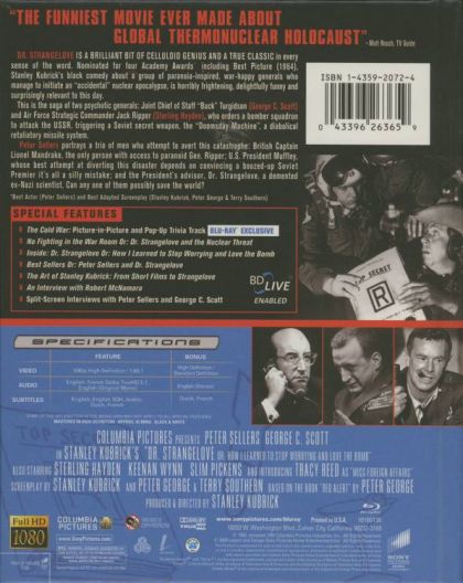 U.S. President Merkin Muffley is on the hot line to Moscow with some rather embarrassing news for the Soviet premier: "Hello, Dimitri....I'm fine....Now then, you know how we've always talked about the possibility of something going wrong with the bomb....The bomb, Dimitri. The hydrogen bomb....Well, now, what happened is that, uh, one of our base commanders...he went a little funny in the head....and he went and did a silly thing....He ordered his planes to attack your country." A comedy about an accidental nuclear attack? One that ends with total annihilation, thermonuclear apocalypse? Preposterous! Stanley Kubrick thought otherwise. In the end his thinking prevailed. The mad saga revolves around a psychotic Strategic Air Command officer, Gen. Jack D. Ripper, who lets loose his B-52 bomber squadron on the Soviet Union. Ripper takes this unilateral action because of his paranoid belief that Communists are sapping and contaminating "all our precious bodily fluids" as part of their plan to take over the world." Unbeknownst to Ripper, his attack will trigger the Russian's ultimate weapon, the Doomsday Machine, a diabolical retaliatory device set to blow up the planet.
