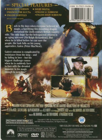 Vermithrax loops around for another dive at Ulrich, who points his staff and gestures, causing lightning to streak out of the clouds and smite the ancient dragon. Vermithrax is briefly knocked from the sky, falling ponderously, before recovering and regaining flight. It dives and rakes Ulrich with a claw, knocking the sorcerer to the ground; his shoulder bloodied. Ulrich struggles to his feet, looking at his wound, when suddenly Vermithrax is hovering in the air behind and above him. The dragon blasts Ulrich with a gout of fiery breath. Ulrich barks an incantation, and is unharmed by the flame, but his staff is burning, and Ulrich casts it aside.