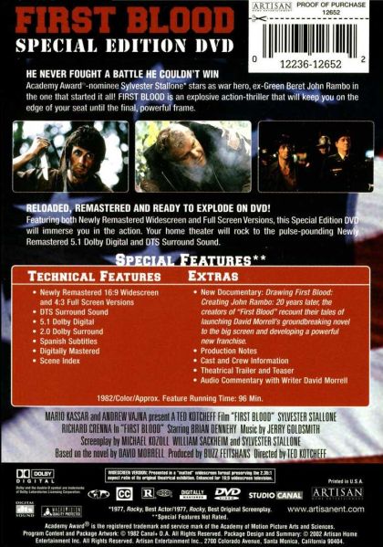 Wandering into a small town in Oregon, Vietnam veteran John Rambo is arrested for vagrancy by corrupt, abusive Sheriff Will Teasle. When Rambo can't stand anymore abuse at the hands of Teasle and his deputies, Rambo goes crazy, killing a deputy and escaping into the surrounding hills, massively armed with every weapon he needs. The local authorities bring in Rambo's former commanding officer, colonel Samuel Trautman, and all Trautman does is tell the locals that they had better get a lot of body bags ready. Written by Todd Baldridge