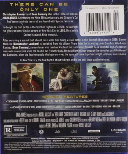 Born in the Highlands of Scotland in 1518, Connor Macleod is immortal. When he is wounded in battle but does not die, he is banished from his village. He meets another like himself, Ramirez, who teaches him swordsmanship--the only way to kill another immortal is to take his head--and the ways of the immortals.