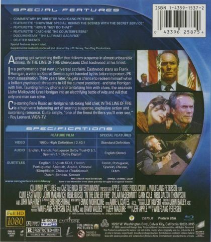 Secret Service Agent Frank Horrigan is a fairly successful agent working for the president, yet the guilt of not being able to save President Kennedy back in the 60's still haunts him. When a lunatic assassin named Booth aka Mitch Leary begins to haunt and torment Frank with phone calls about his failure to save Kennedy and the threats to assassinate the president, Frank must take action and protect the presidents at all costs-even if it causes him humiliation. Does Frank have what it takes to take a bullet?