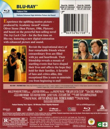 Through a series of flashbacks, four young chinese women born in America and their respective mothers born in feudal China, explore their past. This search will help them understand their difficult mother/daughter relationship.
