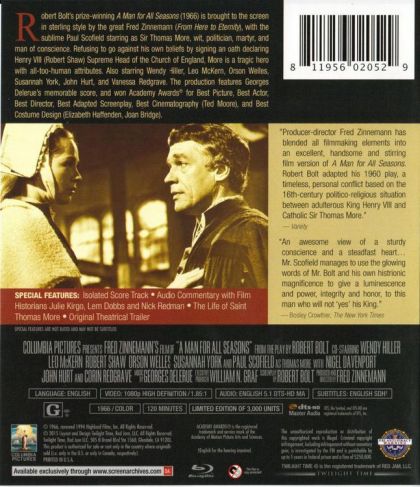The story takes place in 16th century England. But men like Sir Thomas More, who love life yet have the moral fiber to lay down their lives for their principles, are found in every century. Concentrating on the last seven years of English chancellor's life, the struggle between More and his King, Henry VIII, hinges on Henry's determination to break with Rome so he can divorce his current wife and wed again, and good Catholic More's inability to go along with such heresy. More resigns as chancellor, hoping to be able to live out his life as a private citizen. But Henry will settle for nothing less than that the much respected More give public approval to his headstrong course.