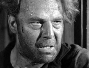 In the cargo bay, Kirk and Sybok regain consciousness first and grapple over a rifle, Sybok seizing it first. He leads Kirk out at gunpoint; Kirk attacks him but fails to subdue the Vulcan. The rifle is retrieved by Spock who points it at Sybok; despite Kirk's shouted order to shoot Sybok, he doesn't and they are imprisoned once again, much to Kirk's consternation. They are led away and Sybok requests a private moment with Sulu and Uhura.