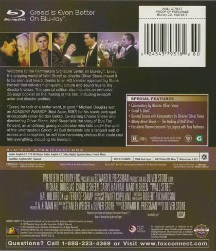 Bud Fox is an ambitious stock trader who will do just about anything to get into the big leagues. He has been actively courting Gordon Gekko, one of the biggest stock speculators on Wall Street. Gekko manipulates the market using inside information and his motto best describes his approach: greed is good. Nothing will stop him from pursuing a good deal and he takes advantage of Bud's burning to desire to succeed. Soon, Bud finds himself getting information from any source and using to gain an advantage. It all comes to a head however when Gekko targets Blue Star airlines, the company where Bud's father has worked for 24 years, secretly planning to break it up and plunder the employees' retirement fund.