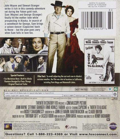 Even people habitually hostile to John Wayne movies tend to cast an indulgent eye on this rumbustious comedy-Western--partly because the Alaska gold rush setting seems more exotic than, say, Texas or Arizona, and because there are no Indians to discriminate against and no macho gunplay to fret about. As for John Wayne as all-purpose icon of male chauvinism, Big Sam McCord (the Duke) spends much of North to Alaska in a state of growing discombobulation because he has fallen in love with, and is thoroughly flummoxed by, "Angel" (Capucine), the woman he's brought back from Seattle to marry his heartsick partner George (Stewart Granger). Henry Hathaway directs in a broader vein than usual, but he hits pay dirt. Even Fabian, the latest pop music idol to be dragooned into supporting the elder roughnecks, is fun, and Ernie Kovacs is droll casting as chief "villain." --Richard T. Jameson