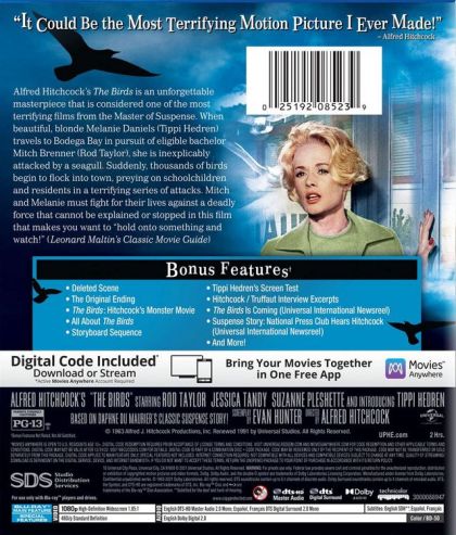 Melanie Daniels is the modern rich socialite, part of the jet-set who always gets what she wants. When lawyer Mitch Brenner sees her in a pet shop, he plays something of a practical joke on her, and she decides to return the favor. She drives about an hour north of San Francisco to Bodega Bay, where Mitch spends the weekends with his mother Lydia and younger sister Cathy. Soon after her arrival, however, the birds in the area begin to act strangely. A seagull attacks Melanie as she is crossing the bay in a small boat, and then, Lydia finds her neighbor dead, obviously the victim of a bird attack. Soon, birds in the hundreds and thousands are attacking anyone they find out of doors. There is no explanation as to why this might be happening, and as the birds continue their vicious attacks, survival becomes the priority.