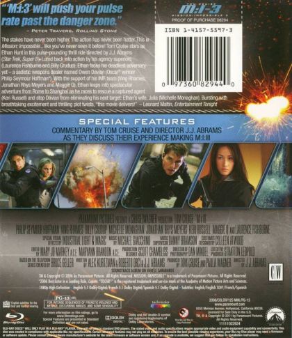 This is the third movie in the Mission Impossible series. Tom Cruise has retired from the Impossible Mission Forces and is about to marry his fiancée Michelle Monagan. In the mean time, a weapons dealer has kidnapped a former subordinate of Tom: Keri Russell. He is asked by the agency to intervene and rescue her as well as track the secret weapon being dealt, known as "Rabbit Foot". He chases the dealer all the way to Shanghai with the help of his team amid some "impossible" tasks using high tech gadgets. However, after that he is entangled into a web of treacheries and double crosses and he starts doubting his superiors. In the end, he has to untangle the net and also save his wife from life threatening danger.