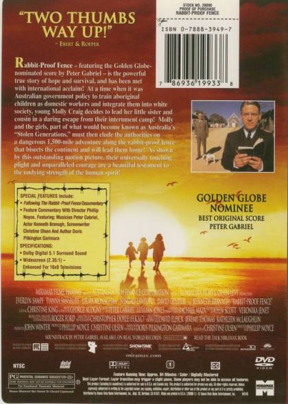 Rabbit Proof Fence is a movie based on a true story. The movie is adapted from a book that the main character is based on. The movie is set in the year 1931. At this time, white men in Australia were sending Aborigine children to camps to learn how to be domestic servants. Molly Craig (Everlyn Sampi), and her sister (Tianna Sansbury) and their cousin (Laura Monaghan) are kidnapped from their village at the beginning of the story. After being sent to their camp, the three girls promptly escape, and start making their long trek home. The only problem is that that long trek, covers of 1500 miles of barren outback. The movie follows these girls who manage to stay just ahead of Moodoo (David Gulpilil), a native tracker, who is sent to re-capture them. These three girls follow a fence designed to keep rabbits in the outback, all the way back to their village and safety…well, not all of the girls…