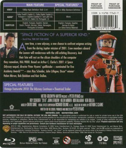 In this sequel to 2001: A Space Odyssey, a joint American- Soviet expedition is sent to Jupiter to discover what went wrong with the U.S.S. Discovery against a backdrop of growing global tensions. Among the mysteries the expedition must explain are the appearance of a huge black monolith in Jupiter's orbit and the fate of H.A.L., the Discovery's sentient computer. Based on a nove.