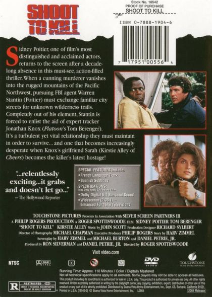 Sidney Poitier returned to the big screen in this action-thriller, after a decade-long absence. When a cunning murderer vanishes into the rugged mountains of the Pacific Northwest, pursuing FBI agent Warren Stantin (Poitier) must exchange familiar city streets for unknown wilderness trails. Completely out of his element, Stantin is forced to enlist the aid of expert tracker Jonathan Knox (PLATOON'S Tom Berenger). The killer has infiltrated a guided hiking trip led by Knox's girlfriend Sarah (Kirstie Alley, at the height of her Cheers fame). Viewers don't know which of the hikers is the killer, and the tension lasts well into the movie.