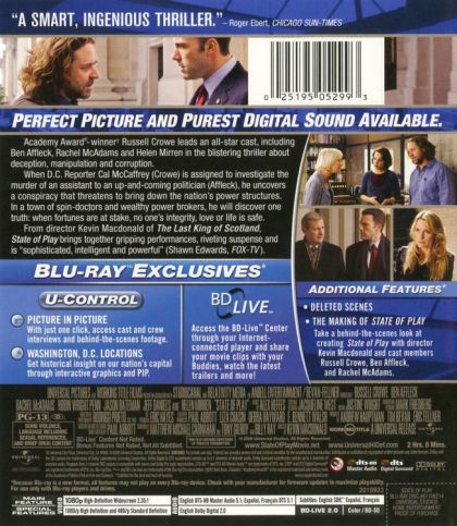 When an aide to prominent US Congressman Stephen Collins dies in what initially appears to be an accident, two journalists from the Washington Globe newspaper investigate when they obtain information that it may not have been an accident. The dead woman was the Congressman's chief researcher in hearings concerning a private sector security firm supplementing the use of US Armed Forces around the world. She was also Collins' lover. The two journalists have contrasting styles: Cal McCaffrey is a traditional print journalist who uses his contacts in the police department to get his information while Della Frye uses new media such as blogging to get her information out to the public quickly. As they delve into the role the private company might play in domestic security, McCaffrey also realizes they have all been duped into making one serious, but false, assumption. Written by garykmcd