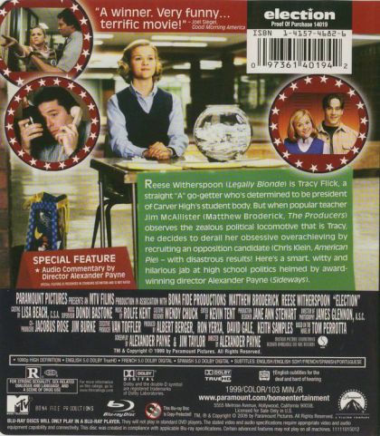 Jim McAllister is a Social Studies teacher at Carver High. A student of his, Tracy Flick, tends to rub him the wrong way. Flick, a loner and ambitious girl, decides to run for class president. McAllister convinces football player Paul to run against her. His lesbian sister Tammy joins the election after her girlfriend starts going out with Paul. During the campaigns, Tracy plays dirty, plying students with muffins and gum. Tammy adopts an anarchist attitude that the student body responds to. Paul has few skills to offer the position. Meanwhile, McAllister's going through a bad time with his wife. Written by Alejandro Frias