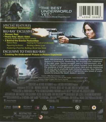 After being held in a coma-like state for fifteen years, vampire Selene (Kate Beckinsale) learns that she has a fourteen-year-old vampire/Lycan hybrid daughter, Nissa, and when she finds her, they must stop BioCom from creating super Lycans that will kill them all.