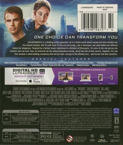 Set in a futuristic dystopia where society is divided into five factions that each represent a different virtue, teenagers have to decide if they want to stay in their faction or switch to another - for the rest of their lives. Tris Prior makes a choice that surprises everyone. Then Tris and her fellow faction-members have to live through a highly competitive initiation process to live out the choice they have made. They must undergo extreme physical and intense psychological tests, that transform them all. But Tris has a secret that she is Divergent, which means she doesn't fit into any one group. If anyone knew, it would mean a certain death. As she discovers a growing conflict that threatens to unravel her seemingly perfect society, this secret might help her save the people she loves... or it might destroy her.