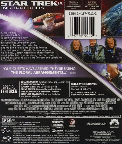 Engage! Captain Jean-Luc Picard and his Next Generation crew are back. From the beginning of the Federation, the Prime Directive was clear: no Starfleet expedition may interfere with the natural development of other civilizations. But now Picard is confronted with orders that undermine that decree. If he obeys, 600 peaceful residents of Ba'ku will be forcibly removed from their remarkable world, all for the reportedly greater good of millions who will benefit from the Ba'ku's Fountain of Youth-like powers. If he disobeys, he will risk his starship, his career, his life. But for Picard, there's really only one choice. He must rebel against Starfleet... and lead the insurrection to preserve Paradise. Written by Robert Lynch