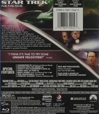 Captain Jean-Luc Picard and his crew return to battle a chilling new adversary... that just happens to hold a shocking link to Picard! In the wake of a joyful wedding between William Riker and Deanna Troi, Picard receives another reason to celebrate: the Romulans want peace and the captain will be the Federation's emissary. But as the Enterprise heads towards Romulus, a brilliant villain awaits--harboring a diabolical plan of destruction and an unimaginable secret that will give Picard his most fearsome challenge. Shinzon, a Romulan-made clone of Picard, wants nothing less than the conquest of the Romulan Empire, the complete destruction of Earth and the death of Captain Picard himself.