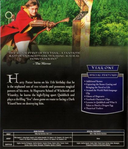 Harry Potter and the Philospher's Stone is the first film in the Harry Potter series based on the novels by J.K. Rowling. It is the tale of Harry Potter, an ordinary 11-year-old boy serving as a sort of slave for his aunt and uncle who learns that he is actually a wizard and has been invited to attend the Hogwarts School for Witchcraft and Wizardry. Harry is snatched away from his mundane existence by Hagrid, the grounds keeper for Hogwarts, and quickly thrown into a world completely foreign to both him and the viewer. Famous for an incident that happened at his birth, Harry makes friends easily at his new school. He soon finds, however, that the wizarding world is far more dangerous for him than he would have imagined, and he quickly learns that not all wizards are ones to be trusted.
