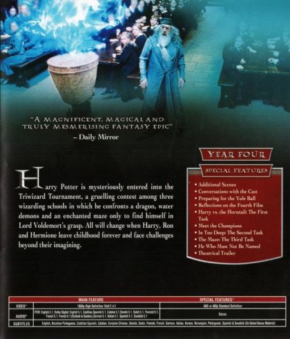 Harry Potter returns to Hogwarts for his fourth year, where the Trizwizard tournament is becoming ready to begin. Students must be over 17 to enter, with the winner receiving eternal glory. Harry can't enter it this year...or can he. When his name is read out from the Goblet of Fire, everyone assumes that Harry Potter has cheated. Harry insists that he never placed his name in there, with someone else behind it. But Who? Harry must now survive through dragons, sea creatures and a terrifying maze, all before coming face-to-face with a particular dark wizard.