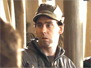 Now Eric is tracking the party taking the Mirror and finds all of the Snow Whites soldiers are dead and seemingly killed each other, but one has a arrow made out of gold and diamonds. Now Eric has two dwarfs with him Nion (Nick Frost) and Gryff (Rob Brydon) and advises them they need to get off the road. Now they are in a Tavern and Eric is trying to find out information about the soldiers, meanwhile Nion hits on a Bar Wench and is not successful. Eric asks why the dwarfs do not date female dwarfs, they both say that the females are ugly and Eric wonders where the baby dwarfs come from, the "boys" say only if they got drunk. Some men approach Eric and Nion makes big talk of Eric as "The" Huntsman, these men reveal themselves as Huntsmen as well. So, of course a fight ensues, as the fight is now outside it looks like Eric is about to lose. Then an arrow shoots through the hand of the Huntsman about to kill him, the hooded figure fights off all of the Huntsmen and it is revealed to be Sara. Eric is shocked to see her and she slugs him, she has the two dwarfs and Eric tied up. It turns out that Eric saw a false image by the Queen and Sara saw Eric turn tail and run and not even fight for her. Sara was put in the dungeon for seven years, she is bitter, of course, and it looks like she is gonna kill him. Eric then says if he is going to die by her hand but gets to see her face then he is happy, she then kicks him in the groin.