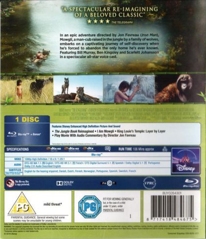 After a threat from the tiger Shere Khan forces him to flee the jungle, a man-cub named Mowgli embarks on a journey of self discovery with the help of panther, Bagheera, and free spirited bear, Baloo.