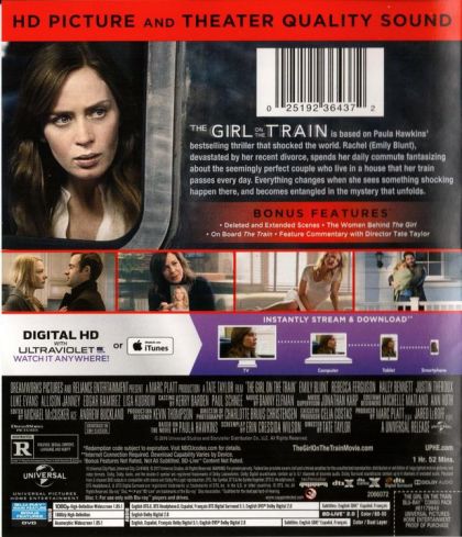 We meet Rachel (Emily Blunt) as she commutes on a train. She tells us her husband always said she had an overactive imagination. Rachel explains that she has been on this train for years and always sits in the same seat, three cars down, so she has the perfect view of a neighborhood. She says she is a new person now and thinks people can see that in her, as a man in a suit makes judgmental eye contact from a nearby seat. Rachel tells us she likes to imagine about the lives of all the people she passes. She wonders if people who live by the train even notice it when it goes by. We see her on various trips watching a blonde woman in her home with her husband. Some days, they kiss; other days, they have sex. She says they have the perfect marriage and she says that's the marriage she could have had. Rachel tells us that she herself was previously married and lived three doors down before her husband left her for another woman. Rachel wonders what the blonde woman's name is and, while Rachel sketches in a pad, imagines the woman to be some sort of artist.