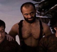 Still in her white swan dress, Brighton has now brought Snow White to the woods. They are both very upset and, while the snow is falling, they hear the beast. Brighton, in appreciation still of how her father treated him so kindly, cuts loose the ropes tying her hands together and tells her to run. She runs through the woods and into a sign saying No Entry. She wakes up inside the house of the 7 dwarfs. She tells them that she is Snow White, however not all of them believe her. She tells them that she has no gold for them, and explains how the Queen tried to have her killed. They are reluctant to let her stay, as they could be killed for it. They decide to let her stay for one night. The dwarfs introduce themselves; Butcher (Martin Klebba), Wolf (Sebastian Saraceno), Half Pint (Mark Povinelli), Grimm (Danny Woodburn), Chuckles (Ronald Lee Clark), Grub (Joe Gnoffo), and Napoleon (Jordan Prentice).