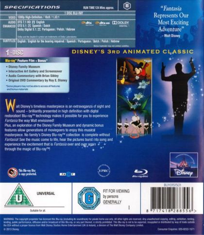 An innovative and revolutionary animated classic from Walt Disney, combining Western classical music masterpieces with imaginative visuals, presented with Leopold Stokowski and the Philadelphia Orchestra. The eight animation sequences are colorful, impressive, free-flowing, abstract, and often surrealistic pieces. They include the most famous of all, Paul Dukas's "The Sorcerer's Apprentice" with Mickey Mouse as the title character battling brooms carrying endless buckets of water. Also included are J.S. Bach's "Toccata and Fugue in D Minor"; Tchaikovsky's "Nutcracker Suite"; dinosaurs and volcanoes in Stravinsky's "Rite of Spring"; the delightful "Dance of the Hours" by Ponchielli with dancing hippos, crocodiles, ostriches, and elephants; and Mussorgsky's darkly apocalyptic "Night on Bald Mountain."