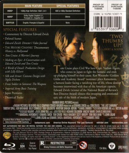 Nathan Algren is an American hired to instruct the Japanese army in the ways of modern warfare -- in this lush epic set in the 1870s, which finds Algren learning to respect the samurai and the honorable principles that rule them. Pressed to destroy the samurai's way of life in the name of modernization and open trade, Algren decides to become an ultimate warrior himself and to fight for their right to exist.