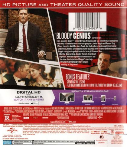 The true story of London's most notorious gangsters, twins Reggie and Ronnie Kray. As the brothers rise through the criminal underworld, Ronnie advances the family business with violence and intimidation while Reggie struggles to go legitimate for local girl Frances Shea. In and out of prison, Ronnie's unpredictable tendencies and the slow disintegration of Reggie's marriage threaten to bring the brothers' empire tumbling to the ground.