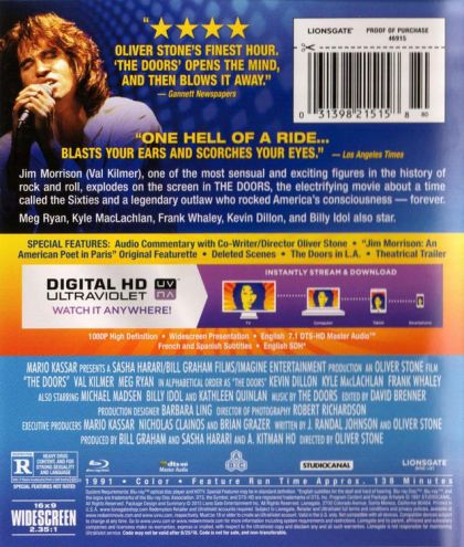 The story of the famous and influential 1960's rock band and its lead singer and composer, Jim Morrison.