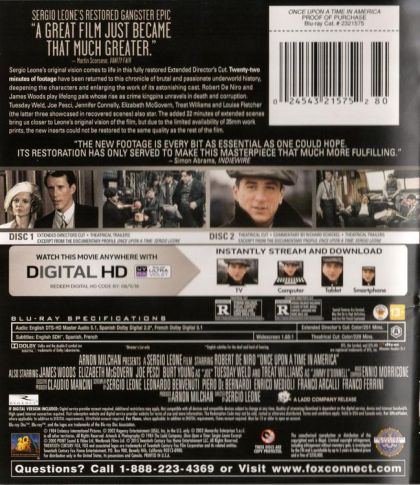 In 1968, David "Noodles" Aaronson (Robert De Niro), returns to the Lower East Side of Manhattan, NY following a prolonged absence. He has been called back to his old neighborhood under mysterious circumstances; he's received a notice from a local rabbi telling him that the cemetery in his old neighborhood is being closed and the remains of those buried there are being moved. He sets himself up in with a room in a bar owned by an old friend, Fat Moe (Larry Rapp), and begins to investigate the summons he received. Noodles is suspicious of the letter, thinking he's been called back to see to the reburial of his old friends, Patrick "Patsy" Goldberg (James Hayden), Philip "Cockeye" Stein (William Forsythe), and Max Bercovic (James Woods), who he used to be in a gang with. Noodles believes someone is seeking revenge against him.