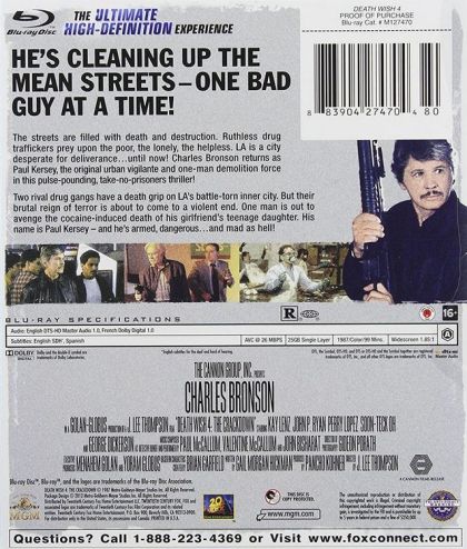 Paul Kersey, LA architect and part-time vigilante, is fed up with violence and wants a quiet life. However, when friend's daughter dies of overdose, he has no choice but to go to war on drug dealers.