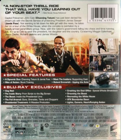 Capitol Policeman John Cale has just been denied his dream job with the Secret Service of protecting President James Sawyer. Not wanting to let down his little girl with the news, he takes her on a tour of the White House, when the complex is overtaken by a heavily armed paramilitary group. Now, with the nation's government falling into chaos and time running out, it's up to Cale to save the president, his daughter, and the country.