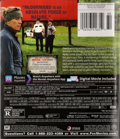 THREE BILLBOARDS OUTSIDE EBBING, MISSOURI is a darkly comic drama from Academy Award nominee Martin McDonagh (In Bruges). After months have passed without a culprit in her daughter's murder case, Mildred Hayes (Academy Award winner Frances McDormand) makes a bold move, painting three signs leading into her town with a controversial message directed at William Willoughby (Academy Award nominee Woody Harrelson), the town's revered chief of police. When his second-in-command Officer Dixon (Sam Rockwell), an immature mother's boy with a penchant for violence, gets involved, the battle between Mildred and Ebbing's law enforcement is only exacerbated.