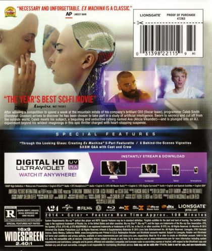 The reclusive CEO of a hi-tech company (Oscar Isaac) recruits a brilliant young computer programmer (Domhnall Gleeson) to evaluate his latest invention -- a highly advanced android named Ava (Alicia Vikander), which is supplied with the most advanced Artificial Intelligence ever conceived. Meanwhile, despite their intelligence and formidable reputations, the two men fail to realize just how easily they can be manipulated by a machine that's as beautiful as it is brilliant.