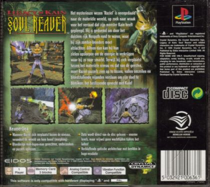 Cast down to the material world, the mysterious entity 'Raziel' seeks vengeance for betrayal by his master: Kain. Cursed to stalk the dark realms of Nosgoth, he must slay his undead brethren; only then can he absorb their souls for the energy he craves. Moving between the spectral and material plane, Raziel must negotiate puzzles, overcome traps and defy blood-chilling enemies to reach his goal - the final battle with Kain!