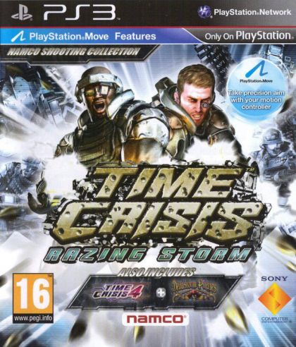 Improving upon the arcade hit, Time Crisis: Razing Storm will feature extensive gameplay modes that combine the series' traditional shooting action with fully destructible environments. Arcade Mode will provide the perfect coin-op adaptation as players experience the adrenaline rush of defeating a chaotic onslaught of enemies. Much like the arcade experience, a friend can drop in and out at any time during the action. In Story Mode, players are able to freely move about the stages as a member of the elite Delta Team. With an arsenal of weapons at their disposal, players can navigate through different areas and silence anyone or anything that stands in their path. They can also strategically take cover behind objects, as well as lock onto enemies with the new Auto Look function. New to the series, a multiplayer Online Battle Mode will allow up to eight players from around the world to participate in cooperative and competitive fun. For a change in pace offline, Sentry Mode offers up to four players the opportunity to stop prisoners from escaping during a penitentiary riot that unfolds in the beginning of the main story.