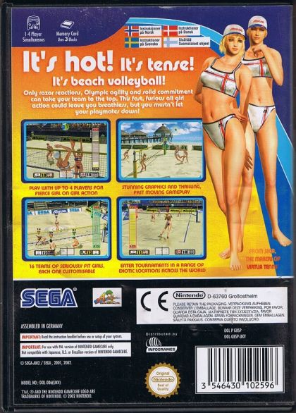 Transforming its arcade sports heritage into a full-on Nintendo GameCube competition, Beach Spikers utilises dynamic camera angles and extraordinary graphics to pull even the most sceptical spectators into the fun. Gamers craving a deeper experience can create their own athlete and team-mate and enter the all-new World Tour Mode where they'll compete to earn attributes and use a mixture of encouragements and insults to develop their team-mate's AI.