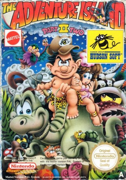 Soar into actio nwith ADVENTURE ISLAND II. That Evil Witch Doctor's just snatched your favorite lady. And you've got to battle your way past EIGHT treacherous islands to get her back! Combat prehistoric monsters -- some of the creepiest, fire spitting critters ever to slither across a video screen! Survive molten volcanoes. Dodge giant scorpions and king cobras. And the action gets even crazier with a new vertical/horizontal scroll. While stage select lets you control play. So sharpen your axe, slip on a leopard skin, and take off for ADVENTURE ISLAND II. It's gonna be a wild ride!!!