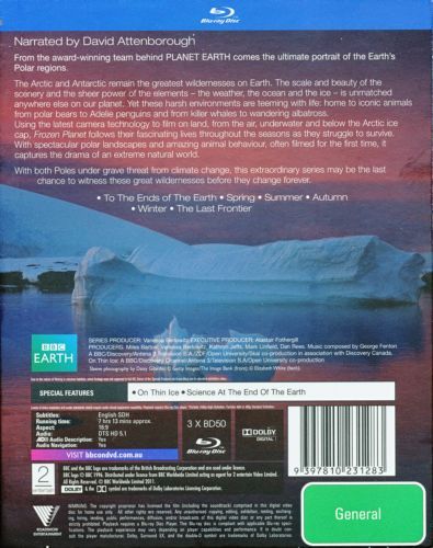 Frozen Planet takes you on the ultimate polar expedition. This landmark series brings to the screen the frozen wildernesses of the Arctic and Antarctic as you have never seen them before, and may never see them again...