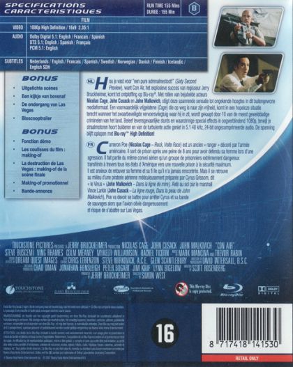 | Audio Tracks | LPCM 5.1 Engels Dolby Digital 5.1 Frans Dolby Digital 5.1 Spaans Dolby Digital 5.1 Engels DTS 5.1 Frans DTS 5.1 Spaans DTS 5.1 Engels |