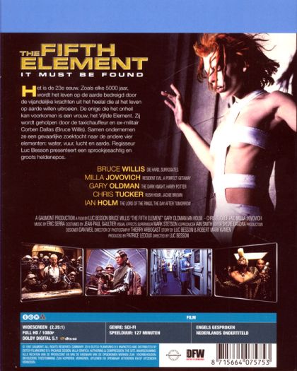 In de 23e eeuw wordt, zoals elke 5000 jaar, het leven op de aarde bedreigd. De enige die het onheil kan voorkomen is een vrouw, het Vijfde Element. Zij wordt geholpen door de taxichauffeur Corben Dallas. Samen moeten ze op zoek naar de andere vier elementen, en hierbij verschillende mensen en aliens zien te omzeilen.