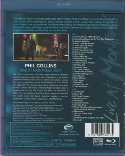 The main show on this Blu-ray was filmed in HD at the 2004 festival and captures Phil performing all of his best known hits from his solo career. The bonus material is a performance by the Phil Collins Big Band at Montreux in 1996. This is the first time any of Phil's big band material has been made available and features Tony Bennett on a track. This combination of all his classic songs coupled with the rarely seen big band material shows the breadth of musical genres Phil has covered in his career and makes a perfect celebration of Phil's association with Montreux.