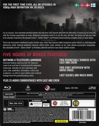 Meet Tony Soprano: your average, middle-aged businessman. Tony's got a dutiful wife. A not-so-dutiful son. A daughter named Meadow. An uncle who's losing his marbles. A hot-headed nephew. A not-too-secret mistress. And a shrink to tell all his secrets, except the one she already knows: Tony's a mob boss whose troubles are wrapped up in his two families. These days, it's getting tougher and tougher to make a killing in the killing business. Just because you're "made" doesn't mean you've got it made.