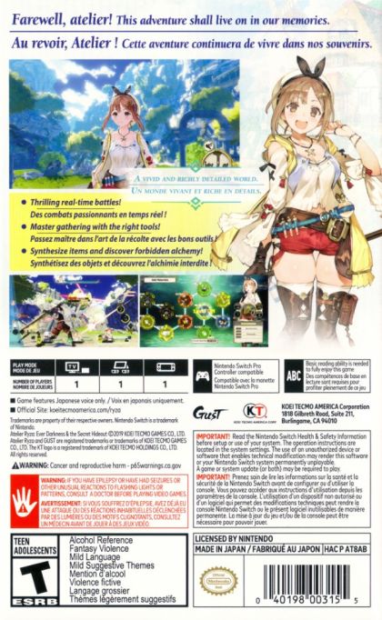 Atelier Ryza: Ever Darkness & the Secret Hideout begins an all-new storyline arc in GUST Studios' fan-favorite Atelier series. The beautiful role-playing game follows the exploits of teenage tomboy Ryza, who dreams of escaping her mundane village lifestyle, alongside her band of mischievous friends. One day, as they explore a forbidden island in search of adventure, they meet an elderly magician who will change their lives forever. After some convincing, the old man begins teaching Ryza the enchanting ways of alchemy; launching her on an adventure that will ultimately lead her on a quest to save her hometown from the mysterious and deadly darkness lurking beneath the surface.